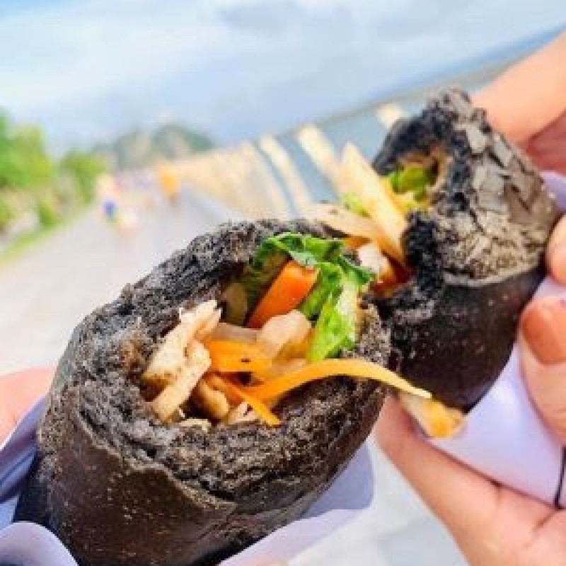 Bánh mì than: đúng như tên gọi, món ăn này có màu đen xì như than, với ý tưởng bắt nguồn từ những chiếc bánh mì lót dạ của công nhân mỏ than. Vỏ bánh được tạo màu từ bầu mực của con mực và tinh than tre, còn chả thì làm từ mực mai giã tay, chiên nóng, cắt thành từng miếng nhỏ rồi rưới nước sốt rau củ.[74] Nước sốt của bánh có vị chua, làm từ các loại rau củ như hành tây, cà chua, cà rốt, kinh giới... cùng đầu tôm ninh trong một tiếng rồi đem đi xay nhuyễn.